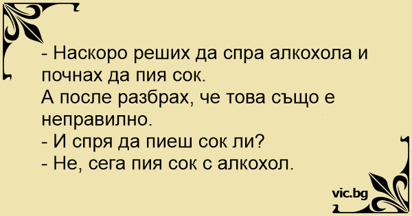 Naskoro Reshih Da Spra Alkohola I Pochnah Da Piya Sok